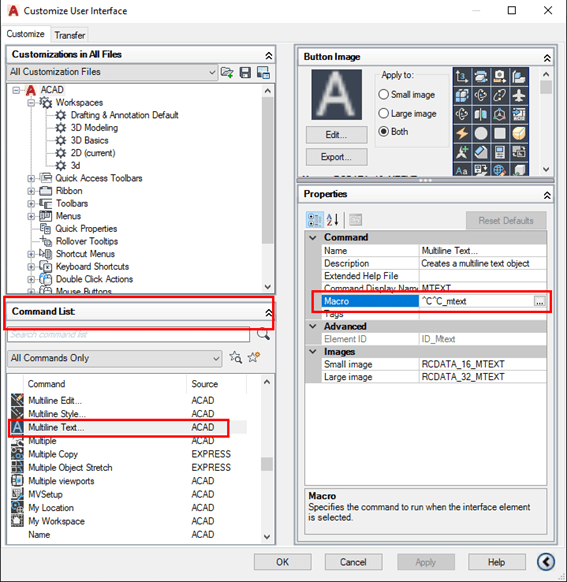 Facilitando inserção de textos….Para evitar os dois cliques na tela que determinam a largura do texto, altere o macro que controla o comando Mtext